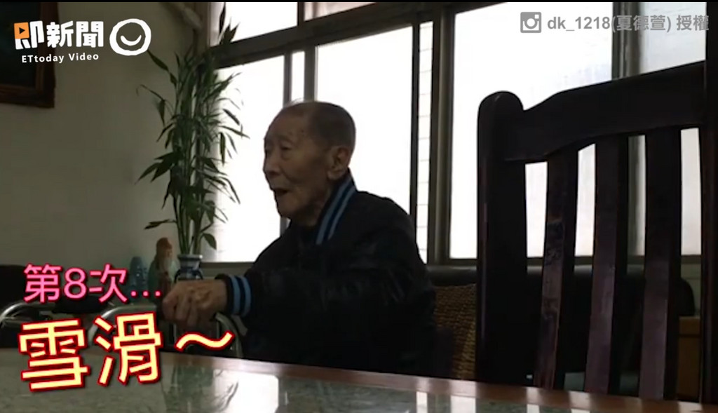 夏德萱表示,「爺爺以前是奶奶出門才會一直找,現在是無時無刻都很沒安全感」,影片中可以看到,爺爺不斷叫著奶奶,就算知道對方是去上廁所,仍然不斷的叫喚「雪滑~」,終於等到人來了,馬上撒嬌的說了「你不要我啦?」為了讓爺爺可以一直看到奶奶,夏德萱因此開始學煮飯切菜,但是「最害怕奶奶要洗澡,洗澡好痛苦,大概要叫800遍」