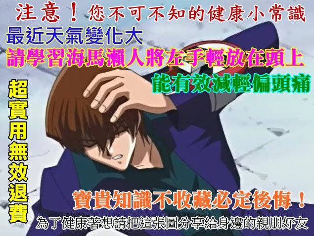 一名喜愛日本動漫「遊戲王」的女網友,日前在臉書表示,深受爸媽天天傳長輩圖之苦,乾脆自己動手設計一款獨一無二的「海馬長輩圖」。圖中以海馬瀨人為主軸,搭配色彩繽紛的勸世文、祝福文,問安文,奇妙的搭配組合,讓網友笑翻天!
