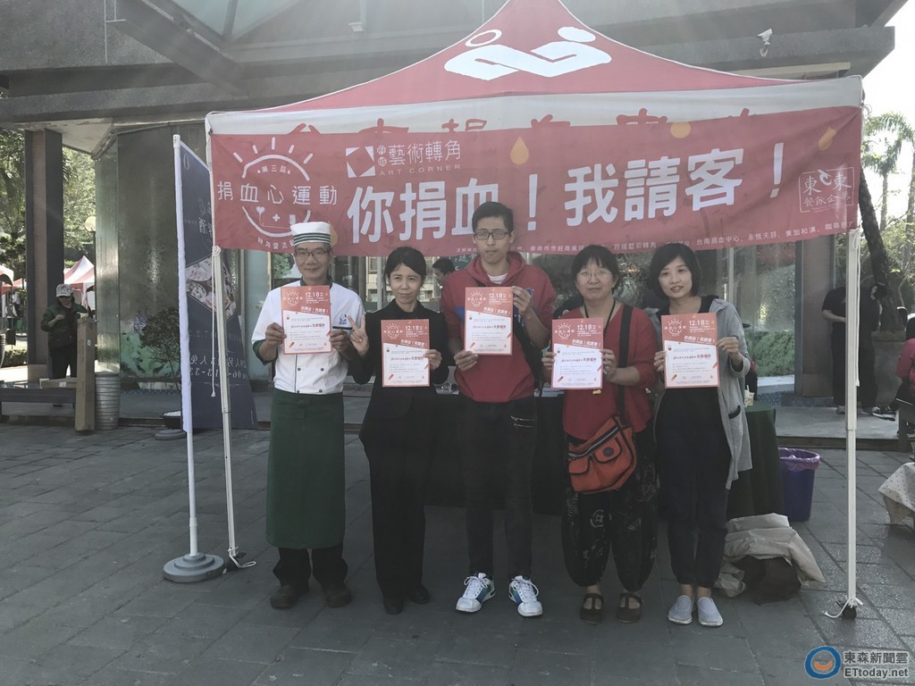 歲末寒冬之際,台南東東餐飲企業旗下「府城藝術轉角」號召民眾踴躍捐熱血,獻出愛心,延續他人生命,18日台南市健康路一段「藝術轉角」旁廣場,舉辦『第3屆捐血心運動‧轉角愛流動』的捐血公益活動,一大早就有民眾開始在排隊等著捐血,總共有100多人一起捐熱血,持續傳遞愛的溫度,以民眾的微薄之力,卻能轉換愛的力量,挽救更多的生命。