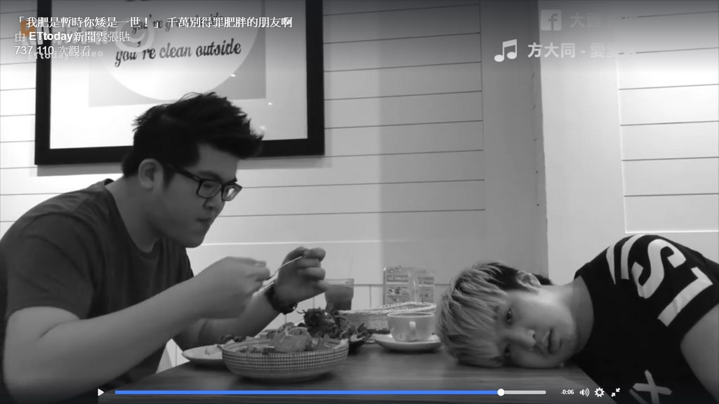片中身材較壯碩的男子邀約朋友吃飯,朋友看到他一直吃飯,嘲諷表示「吃吃吃!肥死你啊!」而壯碩男子也不干示弱,立刻回嗆:我肥是暫時的,「你矮是矮一世!」還創意使用「歌詞諧音」來表達「矮子受傷的心」。