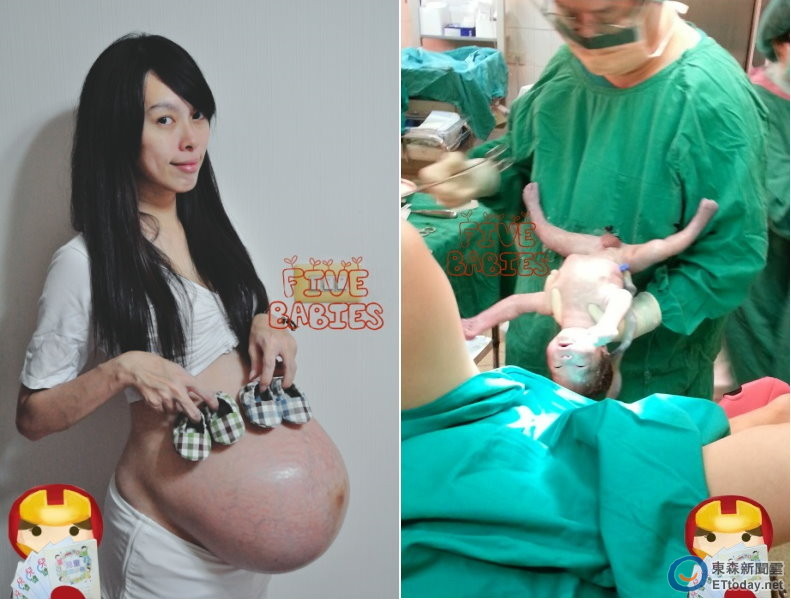 幾個助產護理師協助我先將雙腳放平,怕我撐得太辛苦,不誇張,這時候我才發現,這間生產室中加醫生一位,居然有高達12名的醫護人員在單獨處理我的生產,其中有四名是實習生,一邊接受護理老師的實戰授教,有兩個後續幫雙胞胎哥哥整理,有一個在醫生旁交談,剩下的四個助產護理師則圍在我身邊為我整理擺放好監控儀器、也一直不停的向我確認精神狀況並且不斷的打氣和鼓勵讓我放鬆心情。