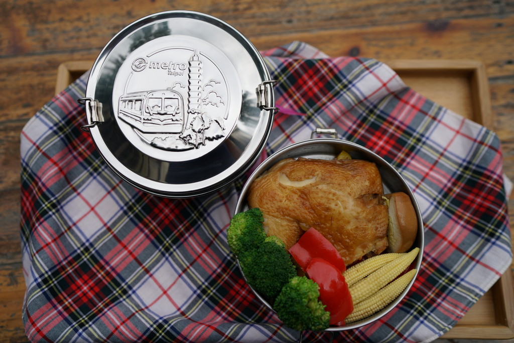 北捷表示,這款「北捷304便當盒」將於12月20日上市,採用食品級304不鏽鋼製成,容量達1000ML,並採雙層分隔設計,方便食材分類儲放,盒蓋上刻上捷運列車圖樣和台北捷運LOGO,兼具環保與實用,每個售價550元。照片中還附上看來美味的雞腿便當做示意。
