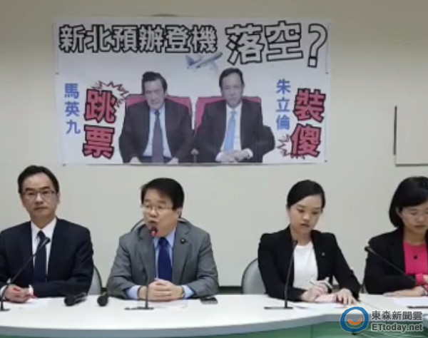 ▲「新北預辦登機落空?馬英九跳票朱立倫裝傻!」記者會。(圖/記者翁嫆琄攝)