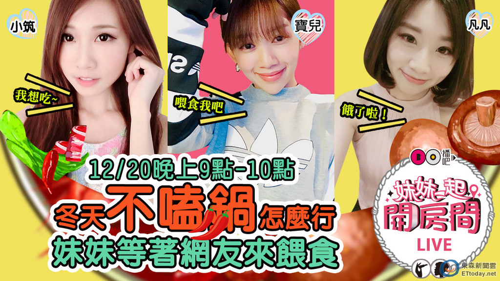 每周二大家最期待的「妹妹一起開房間」又來了!最近天氣這麼冷,所以要帶大家來吃鍋!但是不同以往的是這次「要靠網友吃飯!?」妹妹們會不會餓肚子,這次由「你」來決定!贏家可以指定其它兩位輸家「品嘗地獄料理」,不想看自己心愛的妹妹受苦,記得到「播吧官網」進行「你最想帶哪位妹妹去大嗑火鍋」投票哦!