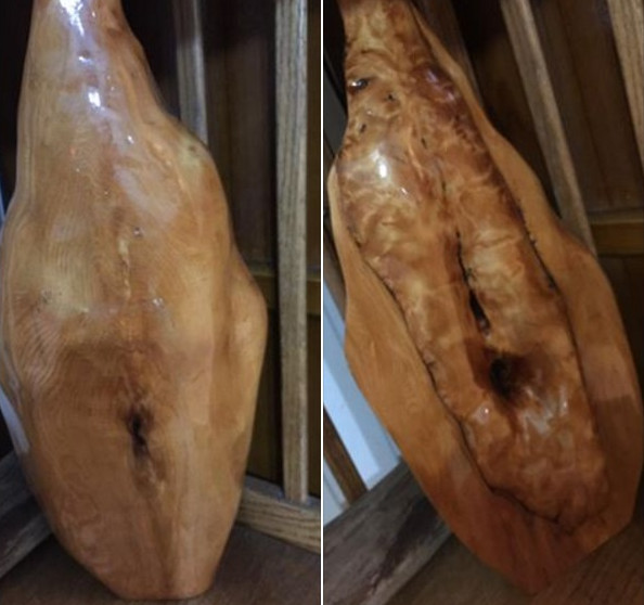 藝術總是讓人難懂。網友日前在《爆廢公社》貼出家中的木頭藝術品,原本好奇媽媽為何不擺到正面展示。直到他翻過來查看秒懂原因,默默轉回去,維持「面壁」的姿態。網友笑稱,「橫批,前鮑後菊。」