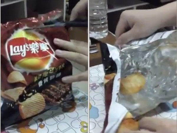 這名網友在臉書社團「爆料公社」po出一段影片,並且發文提到,「好貴的洋芋片,是買組合包,別再說拿時怎麼不知道?你會知道?你會隔空取物?傻眼!單純覺得很稀奇,第一次看到這樣!」