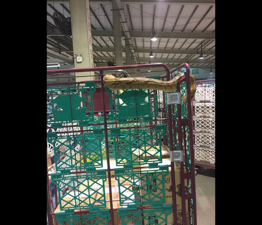 一名網友轉傳一張照片在「聯結車 大貨車 大客車 拉拉隊 運輸業 照片影片資訊分享團」,只見一條大蛇竟然在物流待送貨品區爬來爬去。原PO驚呼這也要便利商店寄店到店,太誇張了。許多網友看了也說「物流、超商人員也太偉大了!」