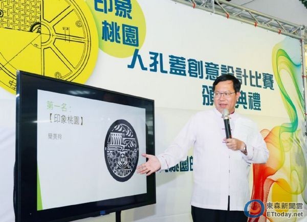 桃園市政府養護工程處20日於市府舉辦「印象桃園-人孔蓋創意設計比賽」頒獎典禮,到場頒獎的市長鄭文表示,市府推動人孔蓋美化計畫,以包括地景、文化、族群、埤塘、機場、石門水庫、桃花、航空城等多元角度,邀創作者大展創意,詮釋桃園特色及城市美學,讓人孔蓋表達城市印記、歷史圖騰與文化特色的藝術品。