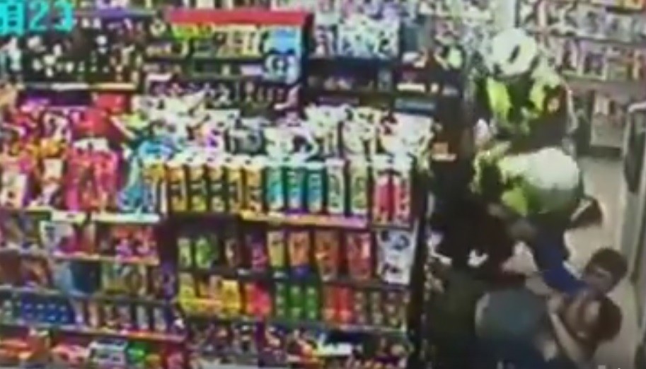 ▲醉男鬧超商,新北土城店員神KO。(圖/翻攝自爆料公社)