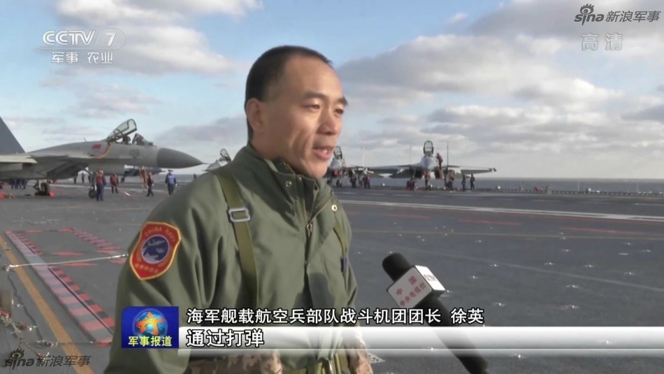 ▼中國海軍艦載航空兵部隊「戰鬥機團」團長徐英,接受央視採訪畫面。(圖/翻攝自央視)