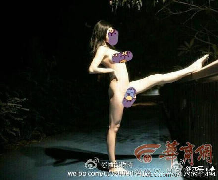 照片中可見到一名女子站在大雁塔旁全身赤裸,甚至抬腿成一直角,一覽無遺的春光讓不少網友眼睛大吃冰淇淋。攝影照片是在西安所拍攝,當時為夏季,因此才能脫個精光展現藝術感。
