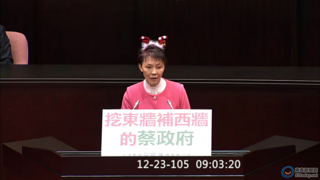 ▼國民黨立委黃昭順戴聖誕帽。(圖/翻攝自立法院IVOD)