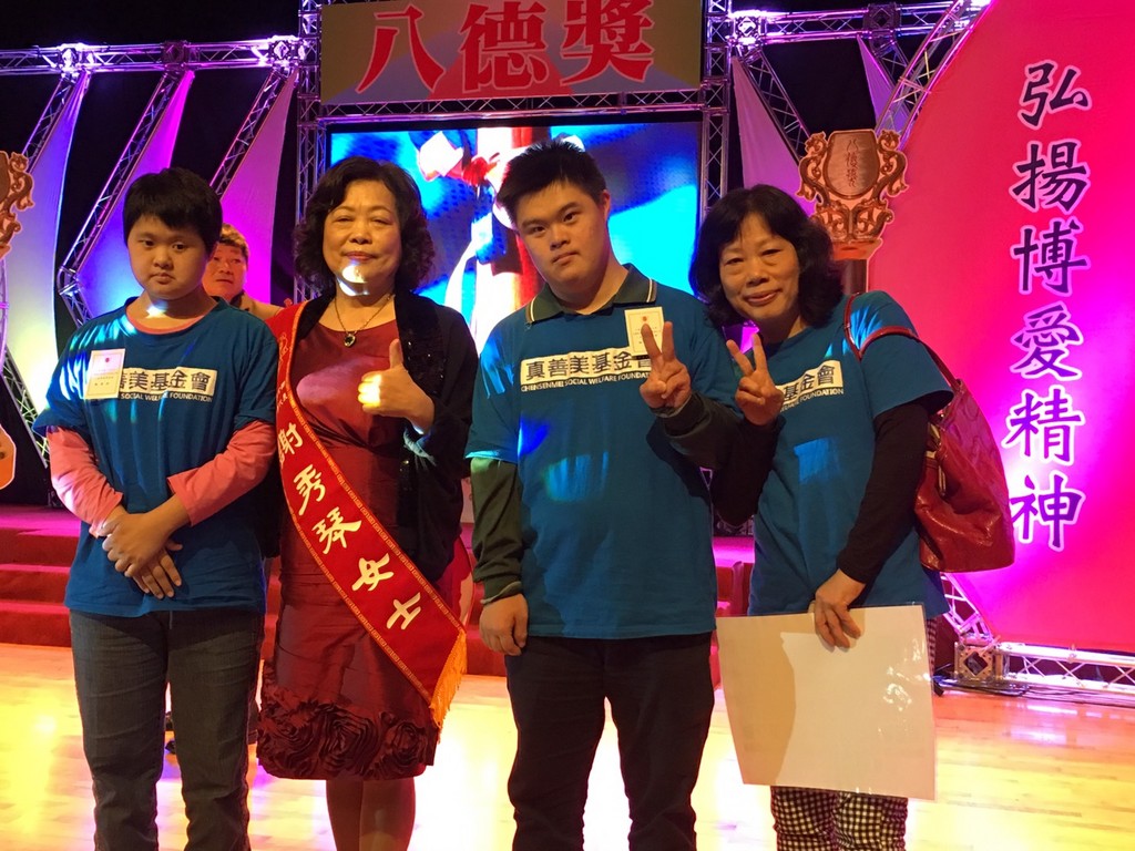 105年全國好人好事代表「八德獎」22日舉行頒獎典禮,來自全國各界23位獲獎者接受公開表揚。其中,65歲的謝秀琴秉持著有教無類的精神,成立真善美社會福利基金會,收容超過200名智能不足的弱勢學生,展現無私大愛的精神,獲得大同行善會推薦,特地北上接受表揚。