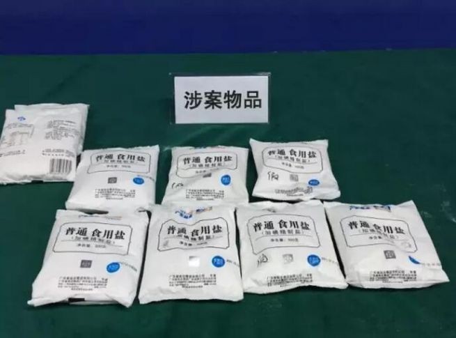 當地警方在現場,查扣假冒「粵鹽」牌普通食用鹽成品152箱、約3.04公噸、假的特質食用鹽成品166箱、約3.28公噸,另外也查扣工業鹽原料4.8公噸,以及一批生產工具。警方指出,嫌犯涉及購入工業用鹽,在不經過清潔、加碘、消毒的情況下,直接加工成食鹽出售。