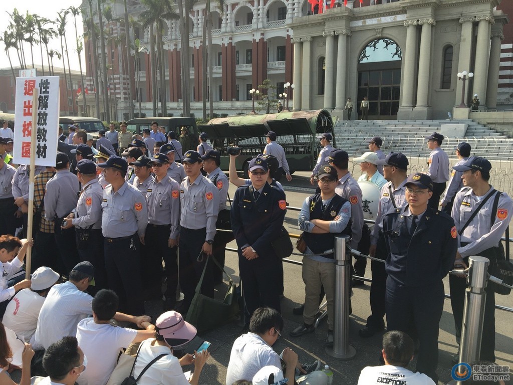 立法院司法法制委員會26日審查與婚姻平權相關的《民法》修正草案,並在中午順利送出委員會;而由下一代幸福聯盟號召的反同婚陣營也隨即轉戰凱道,要向總統蔡英文表達憤怒。眼見人潮聚集,警方緊急在府前拉起拒馬、建立人牆阻隔,而隊伍則在總統府前席地而坐,高喊「總統出來」,並齊聲向府「怒吼」,要讓蔡英文聽見,「我們只有一個訴求,就是家庭要被守護!」