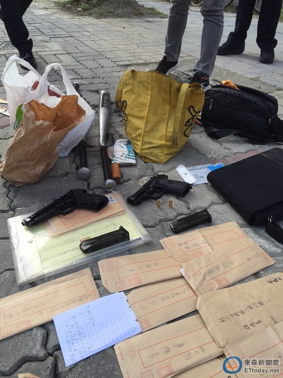 警方指出,許男(73年次)、徐男(73年次)及王男(78年次)下車並蹲下接受盤查,警方則查出3人前科累累,其中王男還是通緝犯;警方也在該輛賓士車上起獲改造手槍、子彈、西瓜刀、球棒等證物。