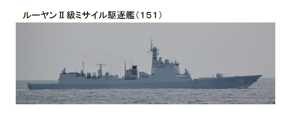 根據日本防衛省公佈的資料指出,此次遼寧號航艦編隊共有8艘軍艦,除遼寧號外,還有052C導彈驅逐艦鄭州號(弦號151)與海口號(弦號171)、052D導彈驅逐艦長沙號(弦號173),另有054A護衛艦煙台艦(弦號538)、臨沂艦(弦號547)與056型的株洲艦(弦號594),與一艘補給舷號966的高郵湖艦。不過,艦隊經宮古水道穿出第一島鏈時,株洲艦與高郵湖艦似乎並未隨行。