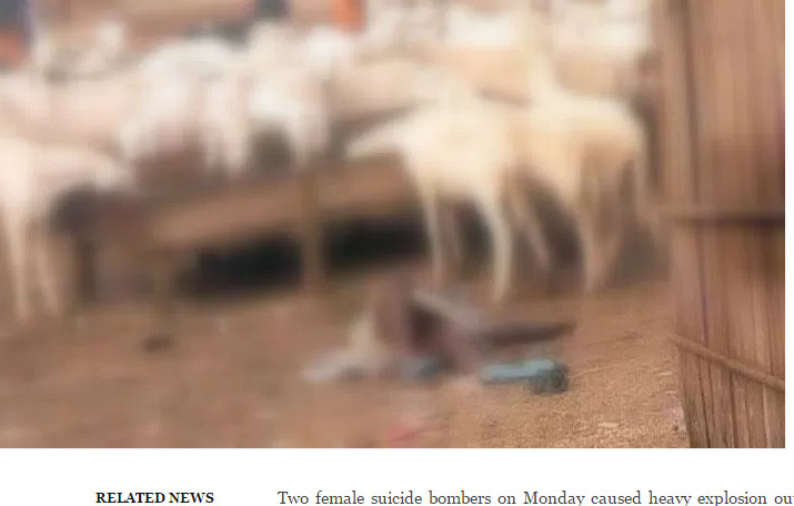 奈及利亞的邁杜古里市(Maiduguri)中部的一處菜市場26日正在人潮尖峰之際,2名女炸彈客埋伏在旁,第一位人肉炸彈雖然成功的引爆自己,屍塊噴散,但是卻沒有造成任何人傷亡;隔了不久,第二位人肉炸彈站在市場邊試圖引爆,但是疑似因為炸彈卡榫問題,並沒有成功,詭異行徑立刻引起路人注意。