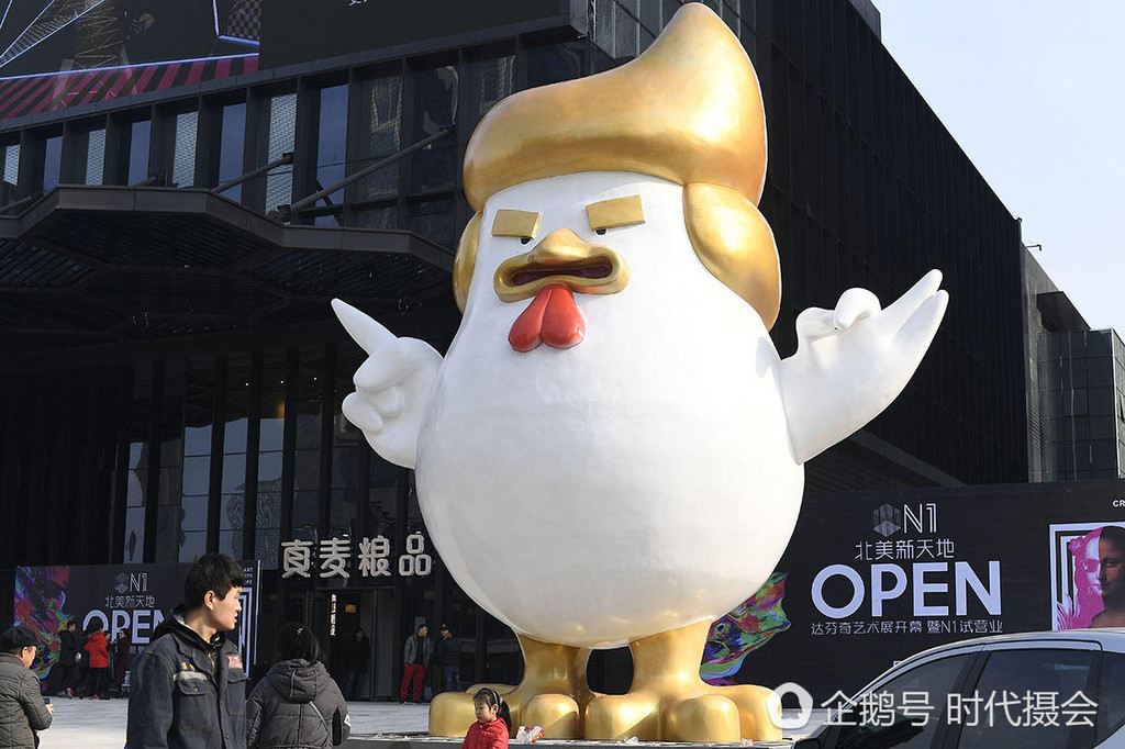 為了迎接即將到來的雞年,山西省太原市的北美新天地N1廣場上豎立了一隻巨雞,遠看還看不出什麼端倪,不過,走近看就會發現,巨雞有一頭金髮,加上兩條金色的粗眉毛,看久了之後,和美國準總統川普還有幾分神似。照片在網路上爆紅,許多網友看完也都紛紛直呼「太像了」。