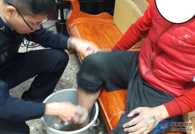 一名失智男子迷路後,一個人蹲坐在芳草公園旁空地的泥濘中,眼神茫然無助,而員警經獲報後趕來,不僅將他帶回派出所避寒,還提水桶蹲地拿毛巾幫他擦拭,所幸後來也連絡上負責照護他的康復之家,將人平安接回。