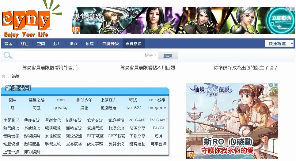 「伊莉討論區」(eyny)又稱伊莉論壇,於2005年成立,是台灣相當有名的網路論壇,會員人數超過1百萬人,提供網路論壇、影片分享、音樂、遊戲、電影、成人資訊等服務;若花錢贊助,即可成為「尊貴會員」,享有無限瀏覽圖片和下載檔案。