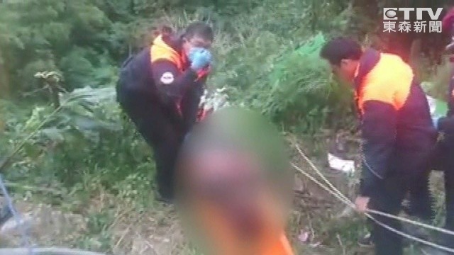 意外發生後,救難人員必須以攀繩的方式爬下山谷,在半山腰發現鍾男(33歲),疑似在墜谷時被拋出車外,但已經沒有生命跡象,警消以吊籃將他吊上路面,至於詳細肇事原因仍待釐清。