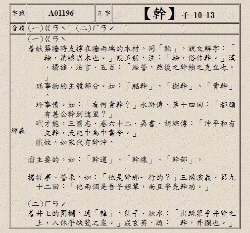 ▲幹的解釋。(圖/翻攝自教育部字典)