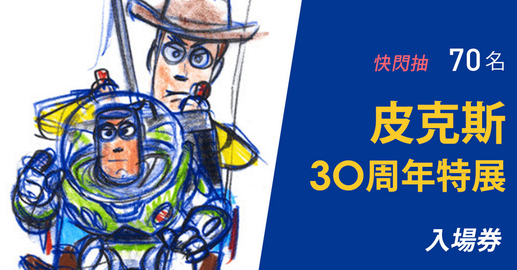 ◎得獎獎項:《皮克斯30周年特展》入場券 1 張,1張券可兩人進場,共35張。一個人限抽一份〈以手機號碼為準〉。