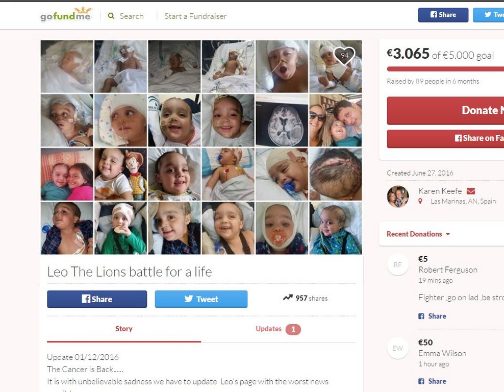 最終,凱倫和老公喬治(Jorge)還是決定讓里歐在西班牙接受治療,儘管如此,醫院還是警告他們「里歐接受治療後,也難以擁有跟其他年輕人一樣的生活」。夫妻兩人現在也在網站「GoFundMe」上募款,以因應未來龐大的治療費。
