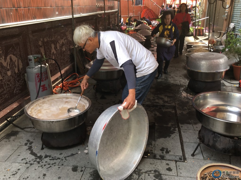 ▲義志工們先煮臘八粥備料,8千份臘八粥,數量龐大。(圖/記者林悅攝)