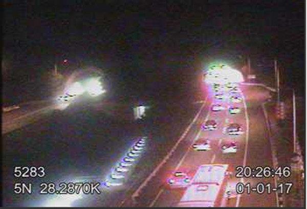 元旦連假Day2,傍晚國道開始湧現北返車潮,高公局表示,西部國道路網從上午10時出現南下車潮,直到晚間8時許,北上車流量大,國1香山、竹北至湖口以及國3龍潭到大溪、樹林等路段都相當壅塞,車速不到時速40公里,尤其國5雪隧也是一片紅!