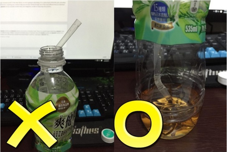 事實上,只要你將順序到過來,把彎頭插進瓶裝飲料中,關上瓶子時,吸管能順利壓入瓶身,下次轉開時,吸管就會自己彈跳出來,完全不會有在瓶口挖吸管的狀況。