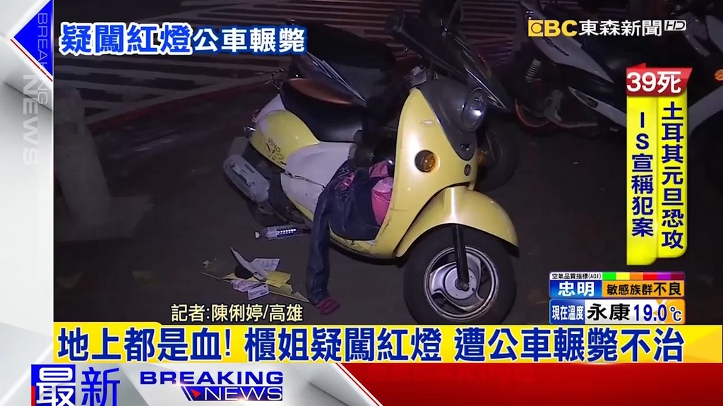 警方表示,柯姓司機(47歲)從建國一路西向東開到大順三路口,見左轉燈亮起要左轉;女騎士從大順三路南往北,要越過建國路,和公車發生車禍。