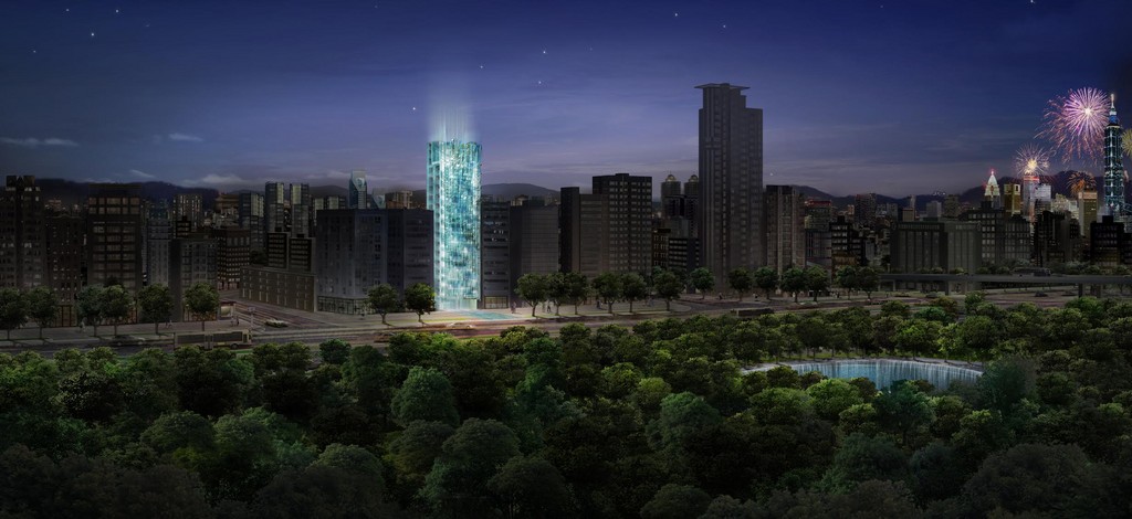 台北在進步,台北的建築外觀也在進步,講究外觀材質,也越來越重視夜間燈光效果,讓台北越來越美麗。呼應「2016年台北世界設計之都」用設計改變生活的概念,建築業者在台北市大安森林公園邊打造出世界上第一座玻璃瀑布建築,連結天空與地面、瀑布和森林,將人工建築與自然環境融合得天衣無縫。