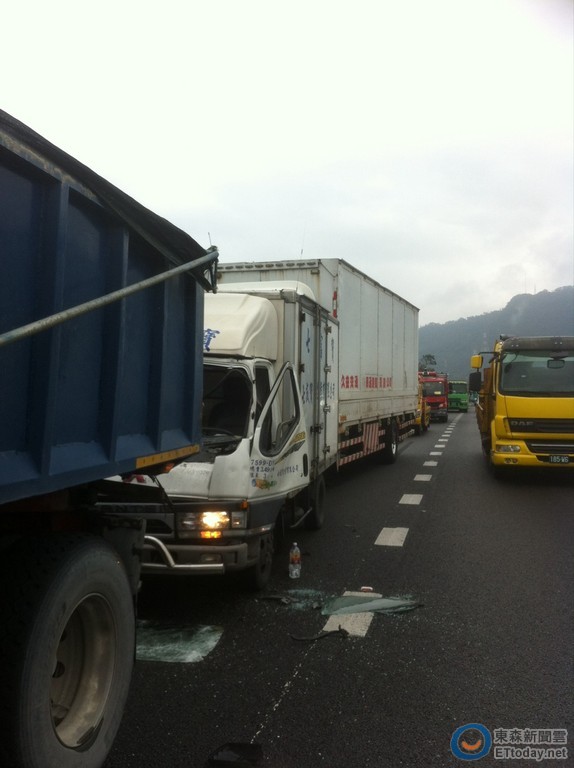 ▲北二高今早發生3部大貨車追撞,造成2人受傷送醫。(圖/記者孫曜樟翻攝)