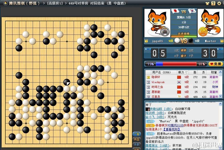 ▲「Master」戰勝井山裕太(ID:jpgo01)。(圖/翻攝微博)