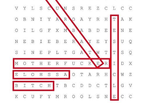 拼字遊戲貼出不久就被人發現有髒話,實際觀察以後也可以輕易發現內容中有「bitch(婊子)」、「testicles(睾丸)」、「asshole(屁眼)」、「mother fucker(他媽的)」、「手淫(Masturbate)」等不雅字眼,作為新年代表字令人很難高興得起來。