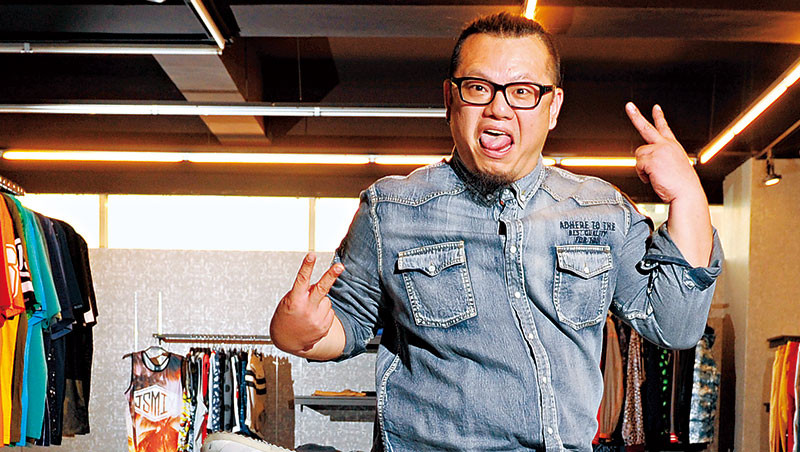身穿韓版縮口窄管褲以及韓版修身襯衫,戴著銀飾耳環,郭祥毅身上的衣服,每一件都是自家公司設計的,散發出濃濃的時尚味,完全不像是刻板印象中寬鬆又單調死板的大尺碼衣服,因為他就是自家品牌的第一代大尺碼模特兒。