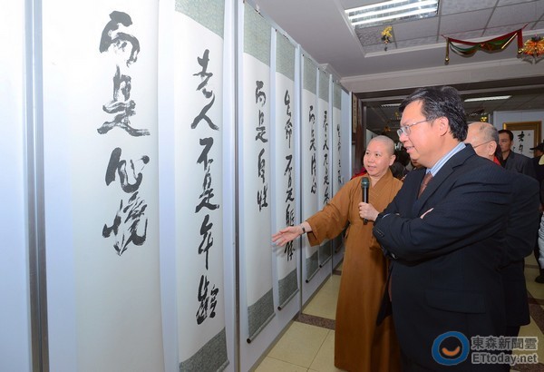 「2017年星雲大師一筆字展」3日於桃園市政府舉辦記者會。蒞臨會中的市長鄭文燦指出,星雲大師「一筆字」展覽,可感受佛法滿滿能量,期盼每個人的心和佛教結合,讓佛法走入日常生活,讓每個人都能發揮菩薩精神,在社會中扮演好自己的角色。