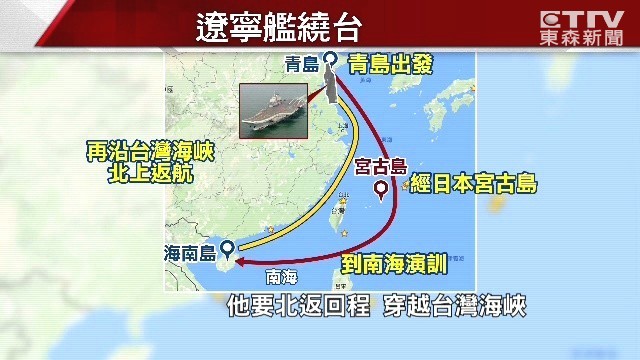 今日各家媒體報導指出,遼寧艦結束南海演訓的任務後,回程將會貼著台灣海峽中線以西直接穿越台灣海峽,整個航程等於繞台灣一圈,而且回程的時間點會在1月7日和8日間,也就是蔡英文出訪中美洲友邦4國的時刻。