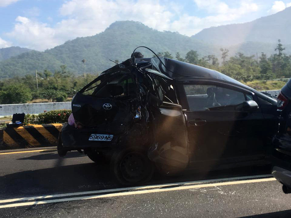 開車看到「拖拉庫」能閃多遠是多遠!有網友於《爆料公社》分享一起車禍事故,地點在屏東縣枋山鄉縱貫公路,一部6.5噸大貨車,撞上熱銷的國產TOYOTA的YARIS五門掀背小車,強大的撞擊力道,讓小車的後半段完全「摺疊」,就連車頂都變形凸起,令人看了怵目驚心。