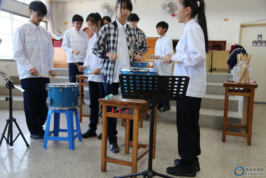 指導老師趙純瓏說,面對這樣克難的環境,他們也發展出一套「想像」式的練習,學生聽著音樂,拿著鼓棒憑空敲打對應位置,想像成自己敲打出的節奏。