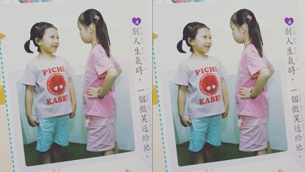 知名粉絲團「南港7條蛇2.0」近日貼出一張照片,內容是課本其中一頁畫面,從國字旁還有標示注音來看,應是國小教材,旨在教導孩子正確的情緒管理方式。圖中有2名女孩,右邊那位雙手插腰,看上去氣憤莫名,左方那位則露出牙齒微笑,「別人生氣時,一個微笑送給他。」