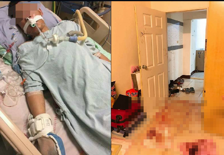 ▲被砍的陳男和案發現場留的大遍血跡。(圖/翻攝自爆料公社,下同。)