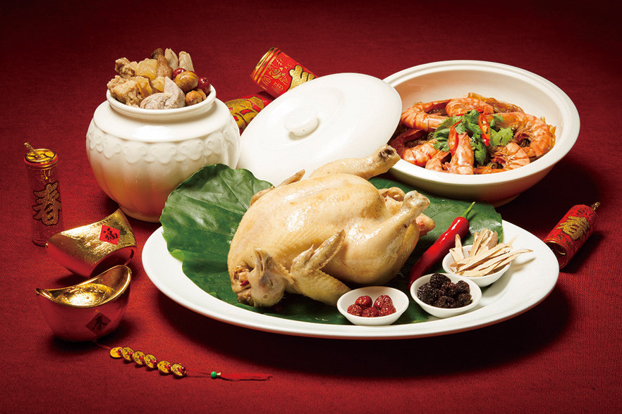 台北美麗信花園酒店,推出「金雞賀歲吉慶年」除夕團圓佳宴。提供香滷圓蹄、蹄筋燴烏參、佛跳牆、菲力牛排、蔥油海石斑、XO醬炒雙鮮、蒲燒鰻魚米糕等應景熱菜,每位用餐加贈蔥油鮮鮑1份。