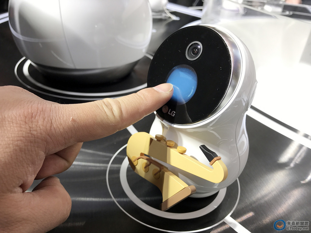 ▲LG Hub Robot機器人臉部可轉動,可辨識不同的家人給予不同的回應,不過展場由於 Wifi 干擾過於惡劣,現場並未公開展示相關操作。(圖/記者洪聖壹攝)