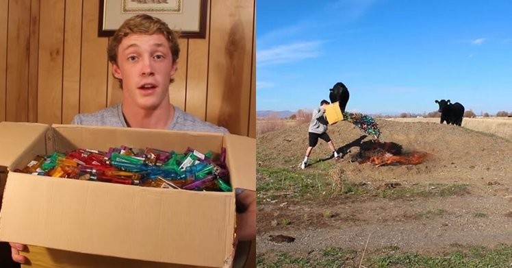 由於放火的地方是牧牛場,所以現場也有牛群好奇走近觀看,雷恩請來朋友幫忙放火,自己負責錄影,他們先將火點起來,才把打火機全部倒入,中間沒有任何防護措施。