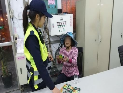 屏東里港警分局太平派出所於6日晚間9時許接獲通報,指一名老婦獨自騎乘單車,在里港鄉載興堤防道路上徘迴;2名警員獲報後,立即趕往現場,發現婦人精神不濟,滿臉疲態,於是便先將她帶回派出所安置,並進行電腦比對,查出對方家住屏東市迪化街,為通報失蹤人口,趕緊通知家屬前來接回。