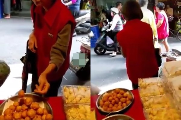 ▼花枝丸攤販的老闆表示,這位阿嬤幾乎是天天報到,光是上個月她就試吃了整整3包花枝丸、還有數包蝦捲。(圖/翻攝自爆料公社)