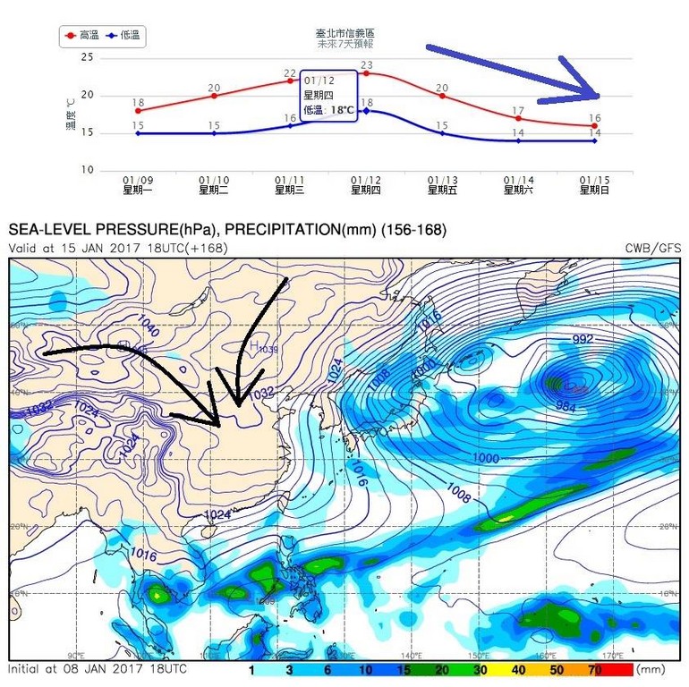 鄭明典今也表示,很多人問,這個冬季會不會冷?我們的標準答案是:當然會有冷的時候,只是不知道何時開始。但是,大尺度的冬季天氣系統,我們有把握在影響台灣一星期前看出徵兆。